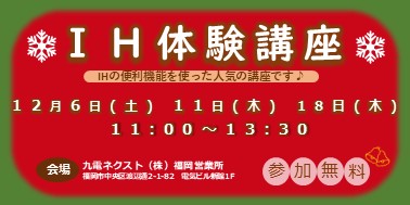 【別府】IHクッキングヒーター体験講座(10~11月)